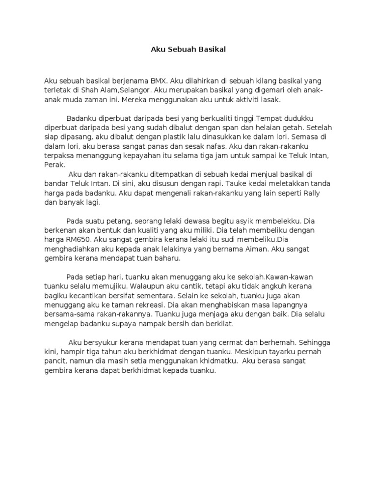 Aku dilahirkan di sebuah kilang membuat basikal di Shah Alam. Add to my workbooks 38 Embed in my website or blog Add to Google Classroom Add to Microsoft Teams. Setelah siap aku dihantar ke sebuah kedai yang terletak di Kuala Lumpur.